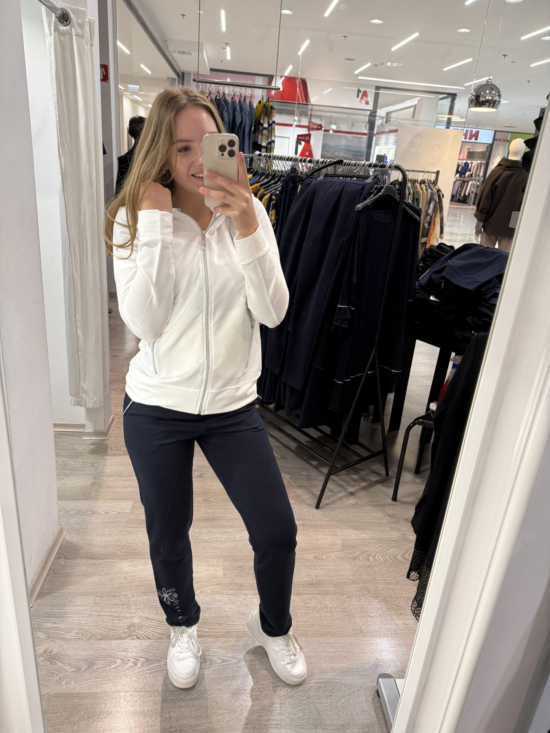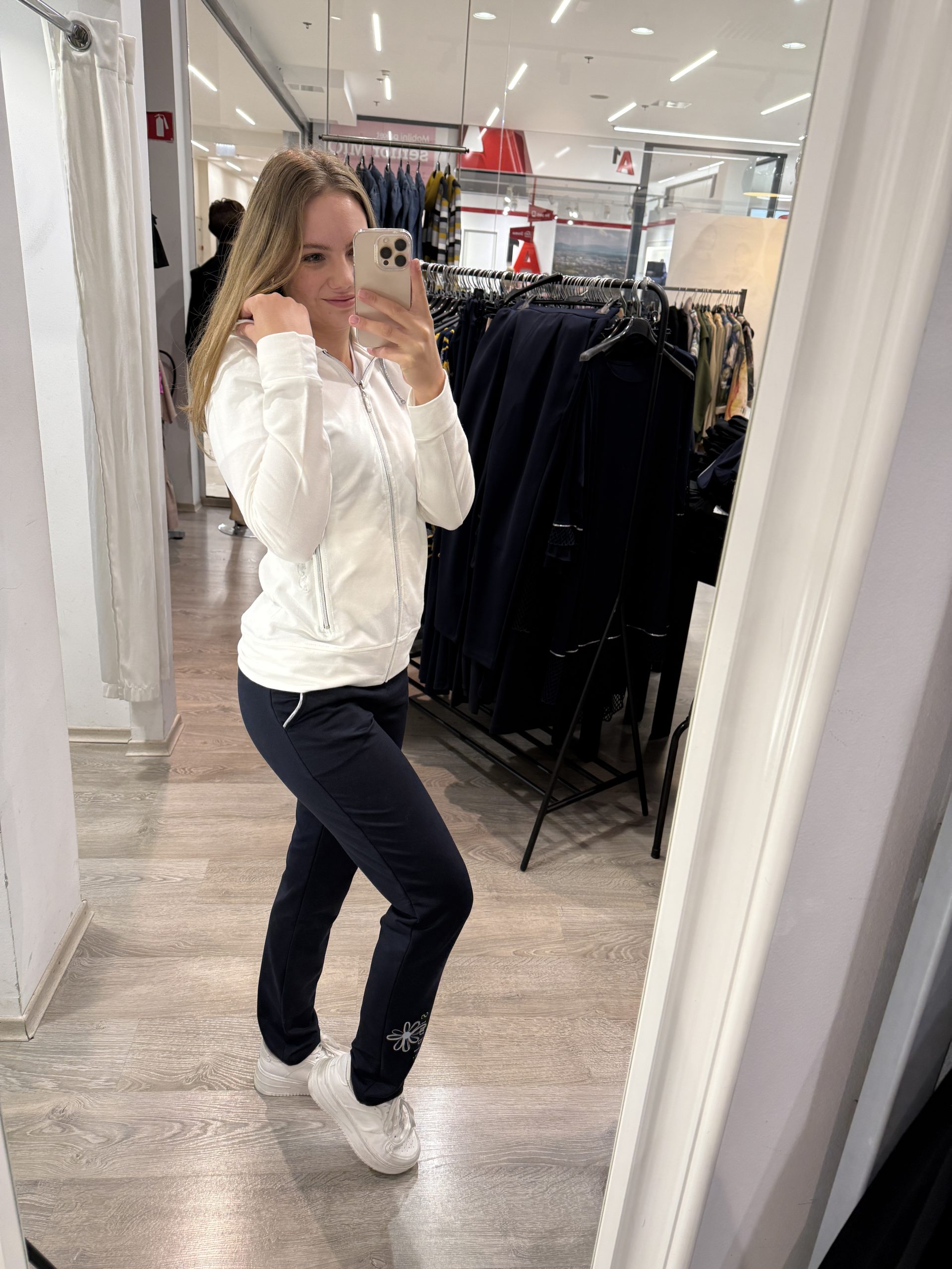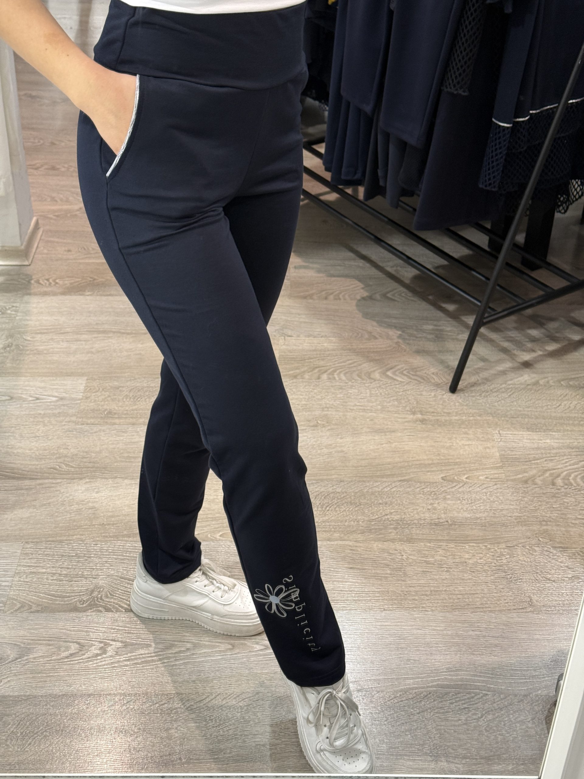 - Na eni hlačnici je dodan srebrni tisk, ki pritegne pogled in daje trenirki modno noto