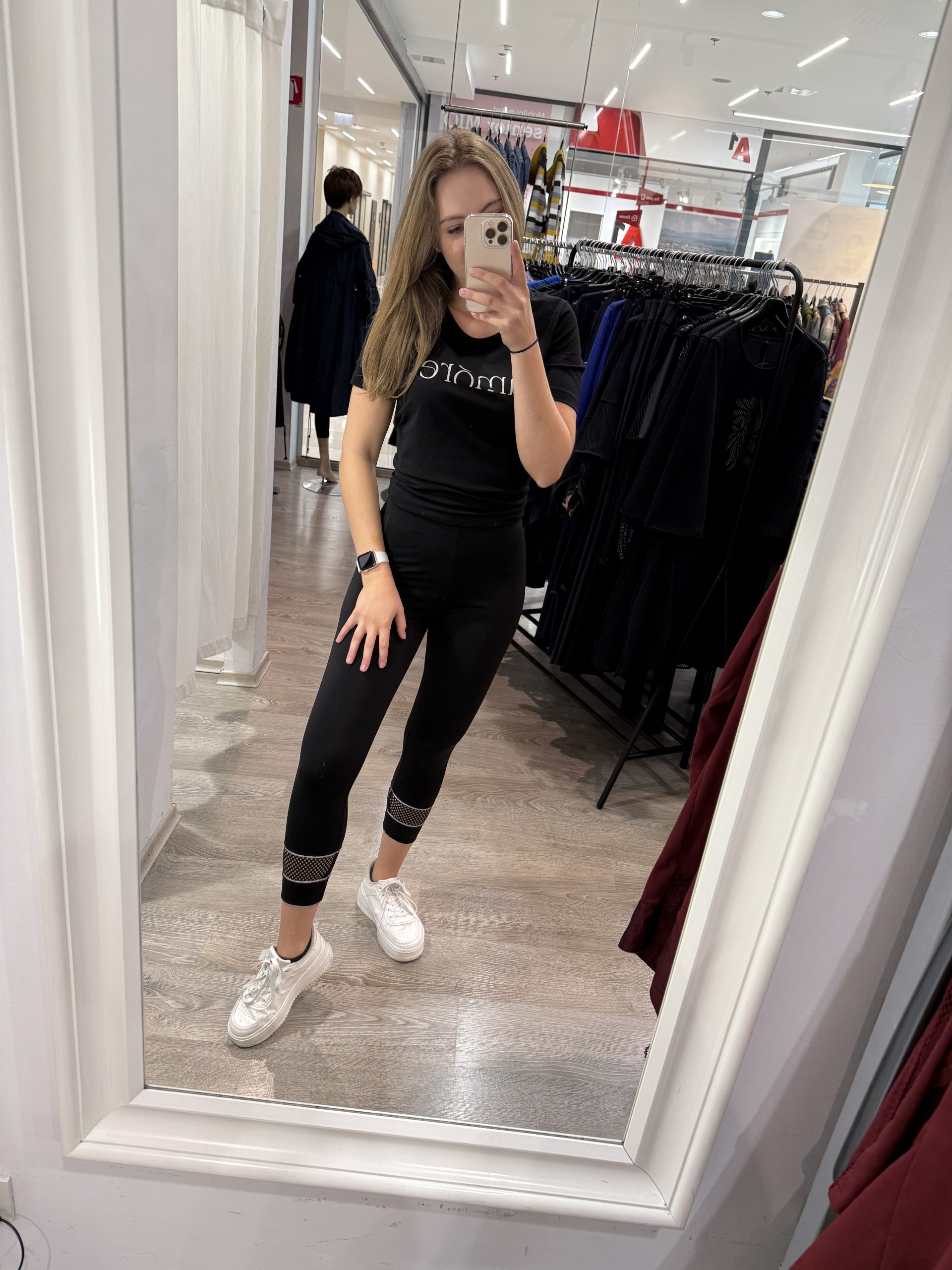 - imajo višji pas, hlačnice so ozke in dolžine 7/8