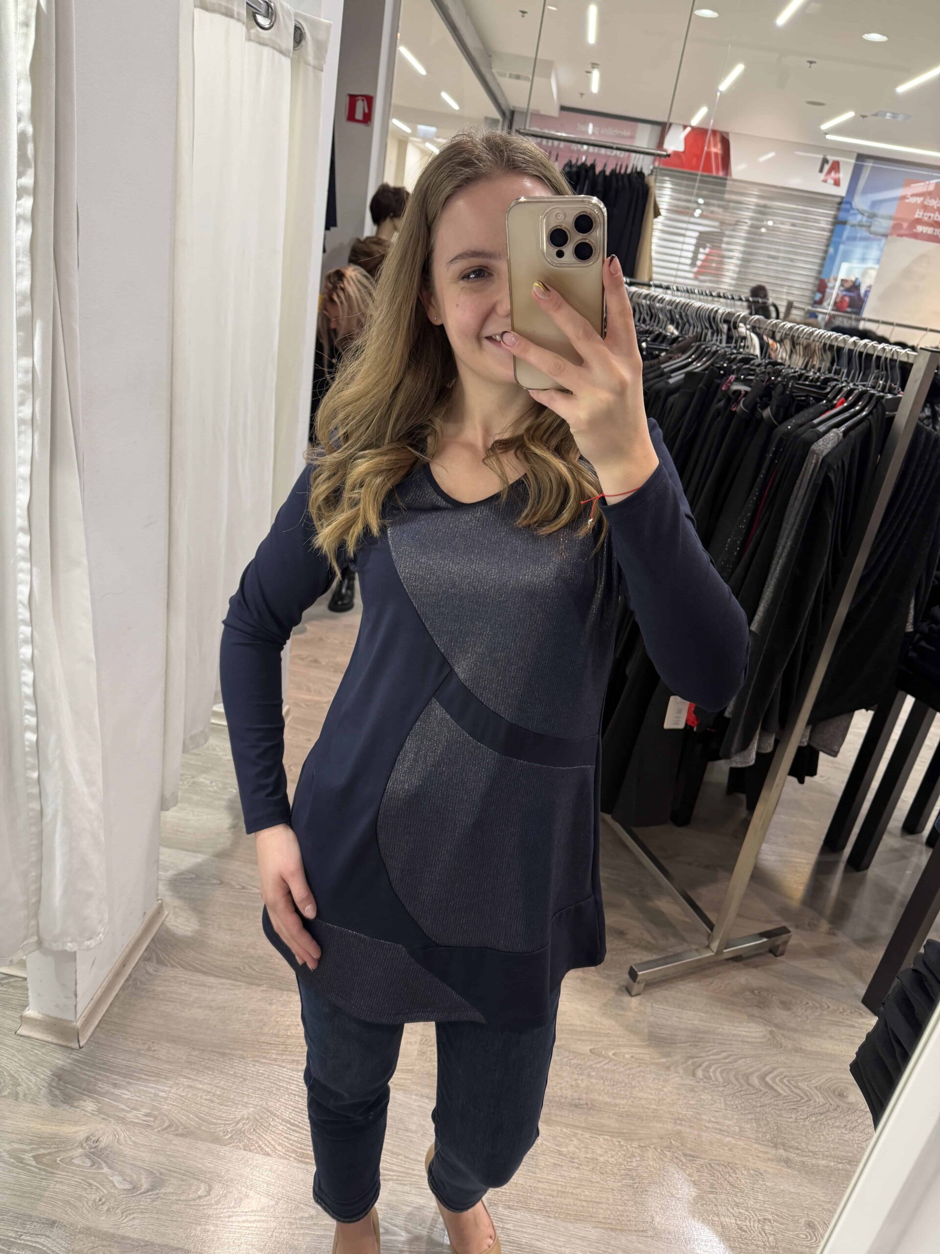 - Tunika ima dolga rokava in je krojena malenkost na ‘A’