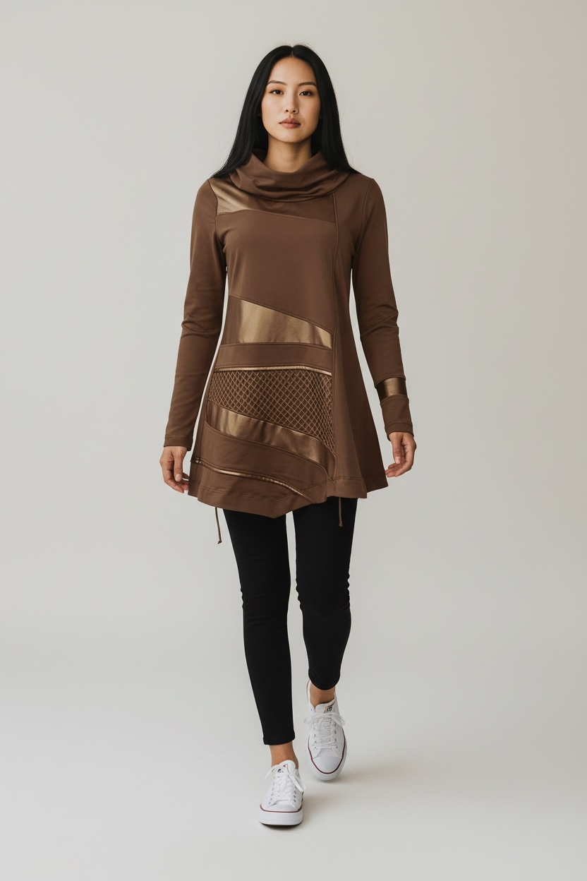 - Spodnji del tunike obogaten z mrežnim vložkom in elegantnim okrasnim trakom za subtilen sijaj