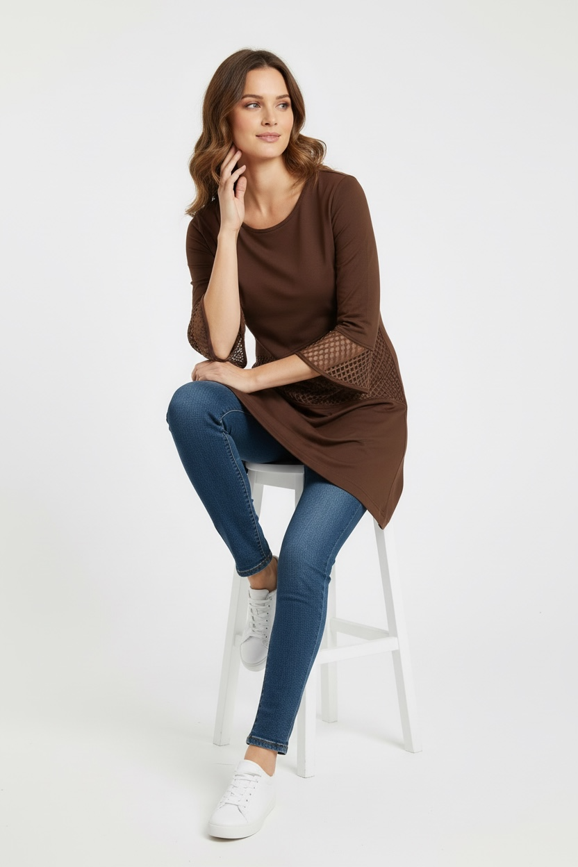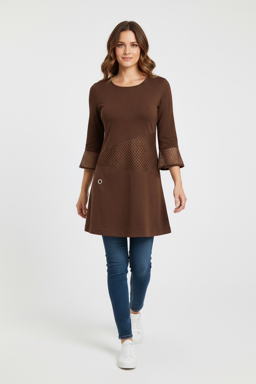 - Prefinjeni mrežasti detajli na rokavih in v pasu dodajo ženstveno noto